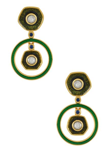 Composition: Gold plated silver with enamel & crystals, Fastening: Push back, All our jewellery is handcrafted and therefore variations may occur.
