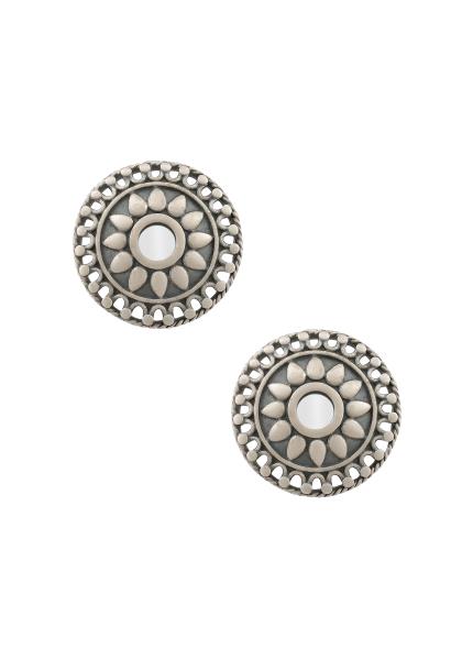 Alluring silver oxidized fish motif rawa and round mirror studded adjustable ring.