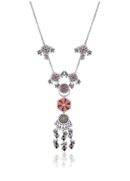 Composition: Oxidized silver with enamel. Fastening: Lobster clasp. All our jewellery is handcrafted and therefore variations may occur.