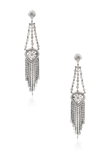 Composition: Silver plated oxidised alloy. Fastening: Push Back. All our jewellery is handcrafted and therefore variations may occur.