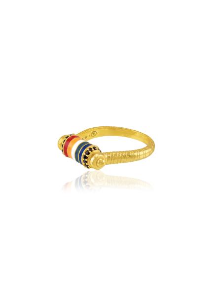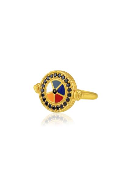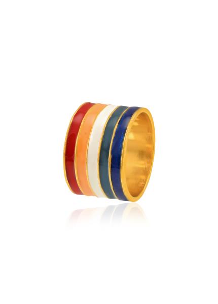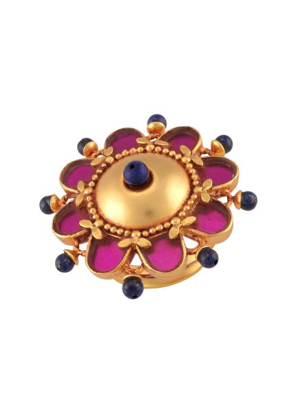 This red blue glass flower ring is crafted in silver plated alloy and beautified with rawa work and ball droplets. This style is perfect for parties, Navratri and Durga Puja celebrations, give your jewel box a cheerful makeover this festive season.