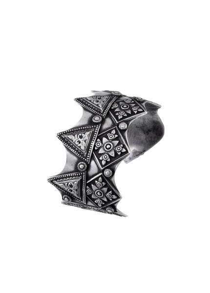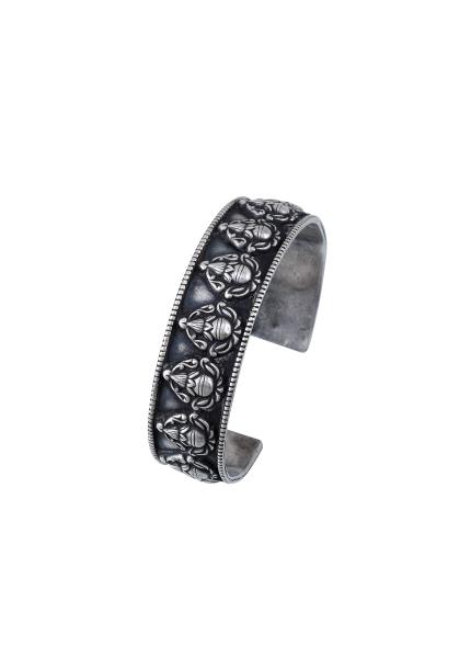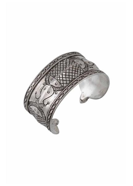 Lovingly crafted out of silver and engraved tribal motifs, this one-of-a-kind bracelet is a must have for anyone in love with boho styles. Our one-of-a-kind pieces are obtained by us from various sources. We do not re-polish, amend, correct or repair these pieces, to maintain its original form.