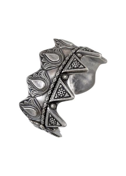 Lovingly crafted out of silver, embellished with colourful stones, and engraved tribal motifs, this one-of-a-kind bracelet is a must have for anyone in love with boho styles. Our one-of-a-kind pieces are obtained by us from various sources. We do not re-polish, amend, correct or repair these pieces, to maintain its original form.