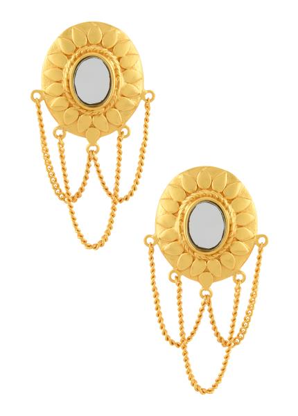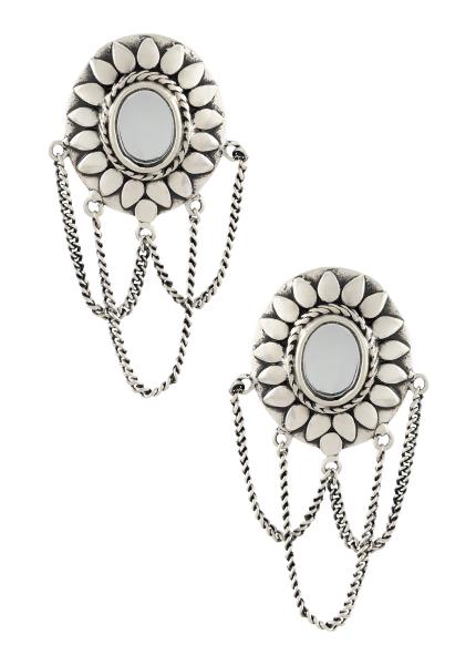 Bejeweled silver round square motif textured frame adjustable ring studded with glass.