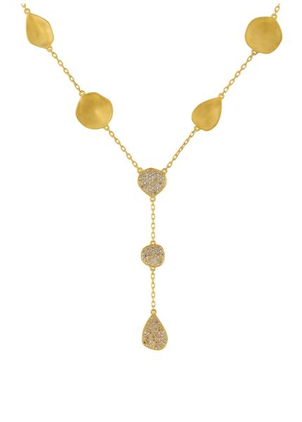 A beautiful blend of ultra-modern aesthetics and classic charm, this resplendent necklace features gold-plated silver adorned with an exotic array of stones.