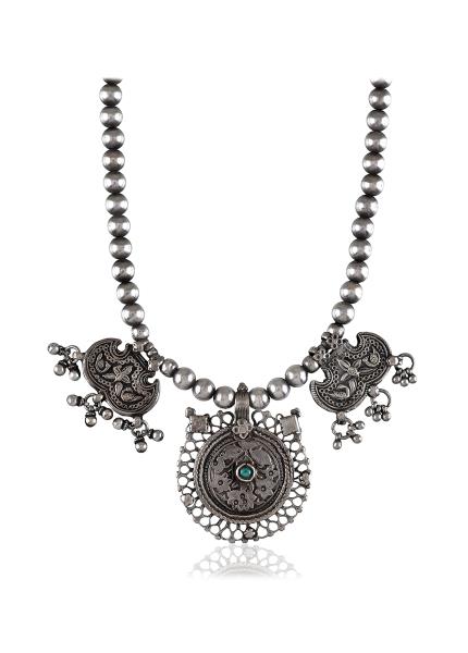Embark on a journey to India’s rich heritage with our latest one-of-a-kind tribal jewellery collection. Adorn yourself with the mesmerizing dance of peacocks, intricate tribal and floral motifs, the charm of rawa, the music of ghungroos, and the beauty of delicate filigree work. Handcrafted in oxidized silver with vibrant enamel, colorful glass, and stones. Come, explore..