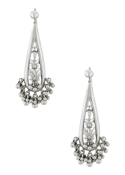 For a bold and beautiful style statement, get hold of these silver tribal earrings with rawa, ghungroo and filigree work.
