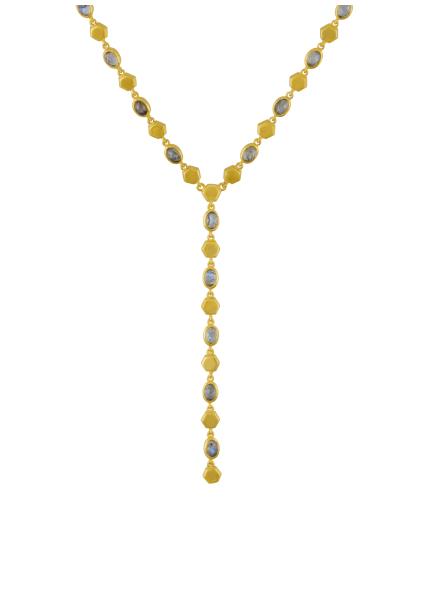 A beautiful blend of ultra-modern aesthetics and classic charm, this resplendent necklace features gold-plated silver adorned with an exotic array of stones.