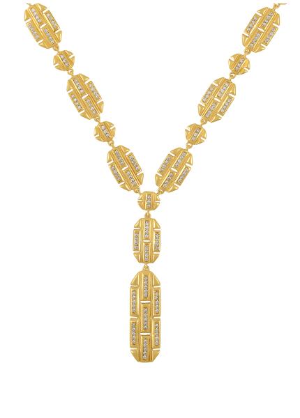 This necklace in a subtle gold look features simple styles with geometric shapes that perfectly complements all your outfits!