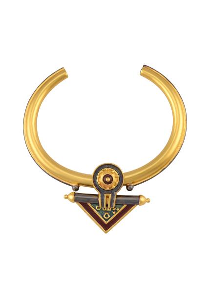 Nandi bull embellishments and enameled textures adorn this magnificent silver plated cuff made in alloy