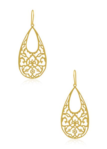 These floral ear studs are handcrafted with gold plated silver and studded with amethyst stones.