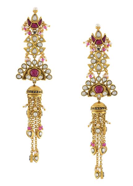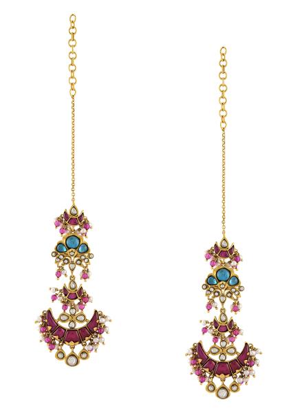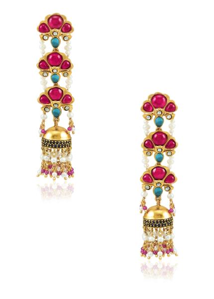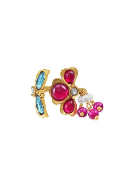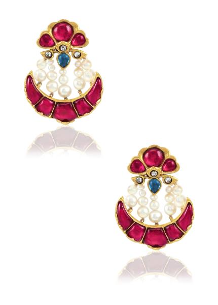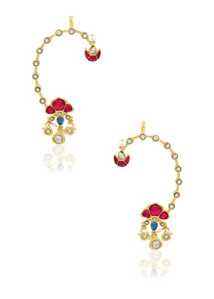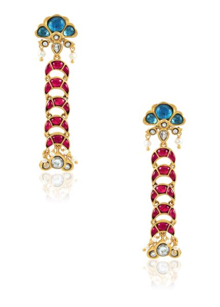 Composition: Gold plated silver with red, blue and white glass, Fastening: S Hook and eye, All our jewellery is handcrafted and therefore variations may occur