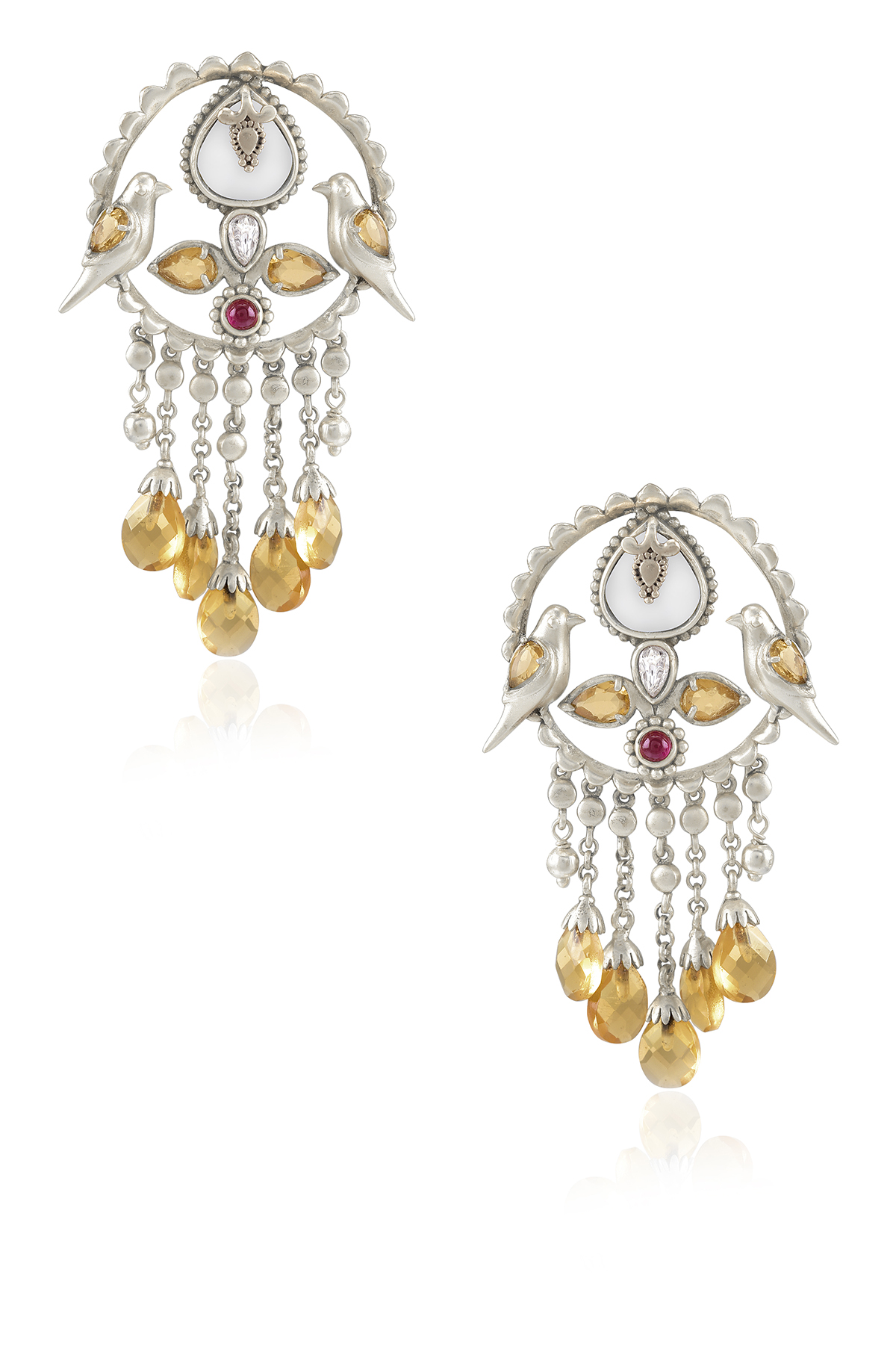 The Birdsong Collection captures the essence of nature through delicate bird motifs and shimmering crystals, artfully blending gold and silver to marry artisanal craftsmanship with the fleeting grace of nature.